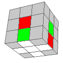 The red-white edge piece lines up with the red center. The green-white edge piece lines up with the green center. The orange-white edge piece lines up with the orange center. The blue-white edge piece lines up with the blue center. | The red-white edge piece does not line up with the red center. The green-white edge piece does not line up with the green center. |